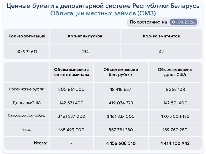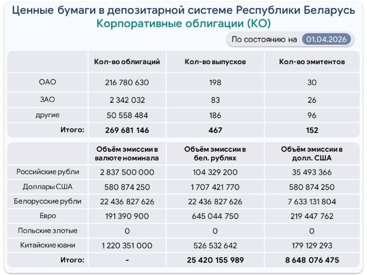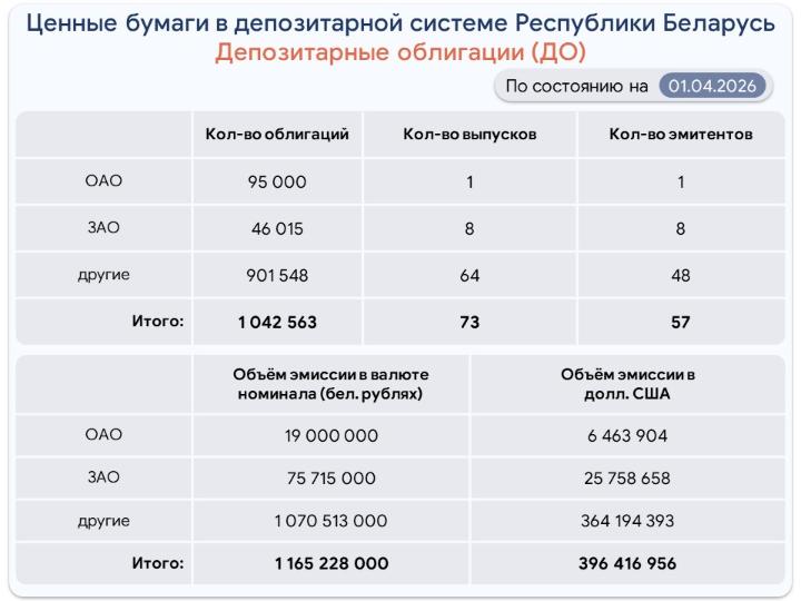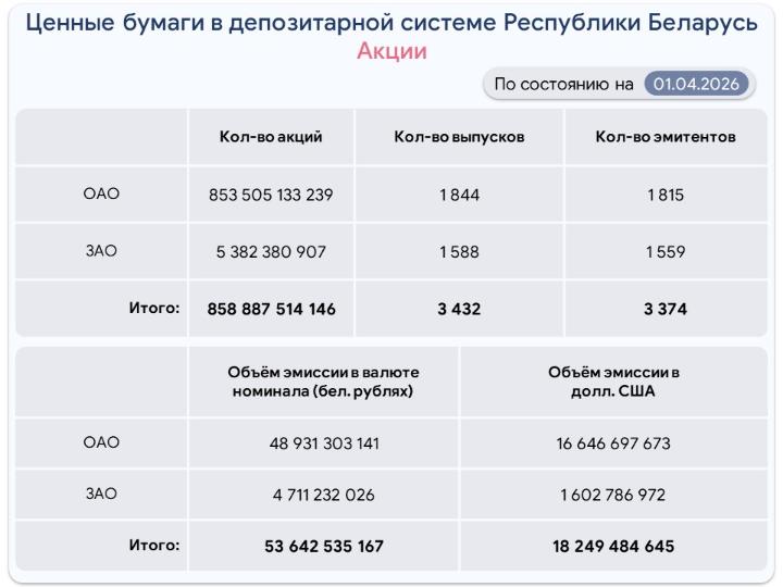 Ценные бумаги на централизованном хранении на 1 апреля 2026 г.