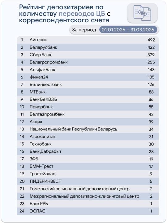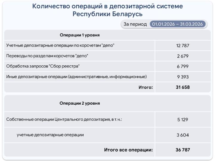 Количество операций в депозитарной системе Республики Беларусь за 3 месяца 2026 г.