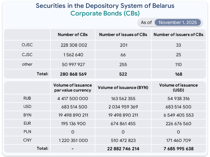 Volume and structure of shares and bonds as of November 1, 2025