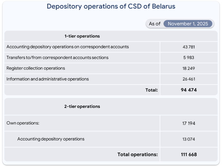 Depository operations in the depository system of the Republic of Belarus for 10 months of 2025