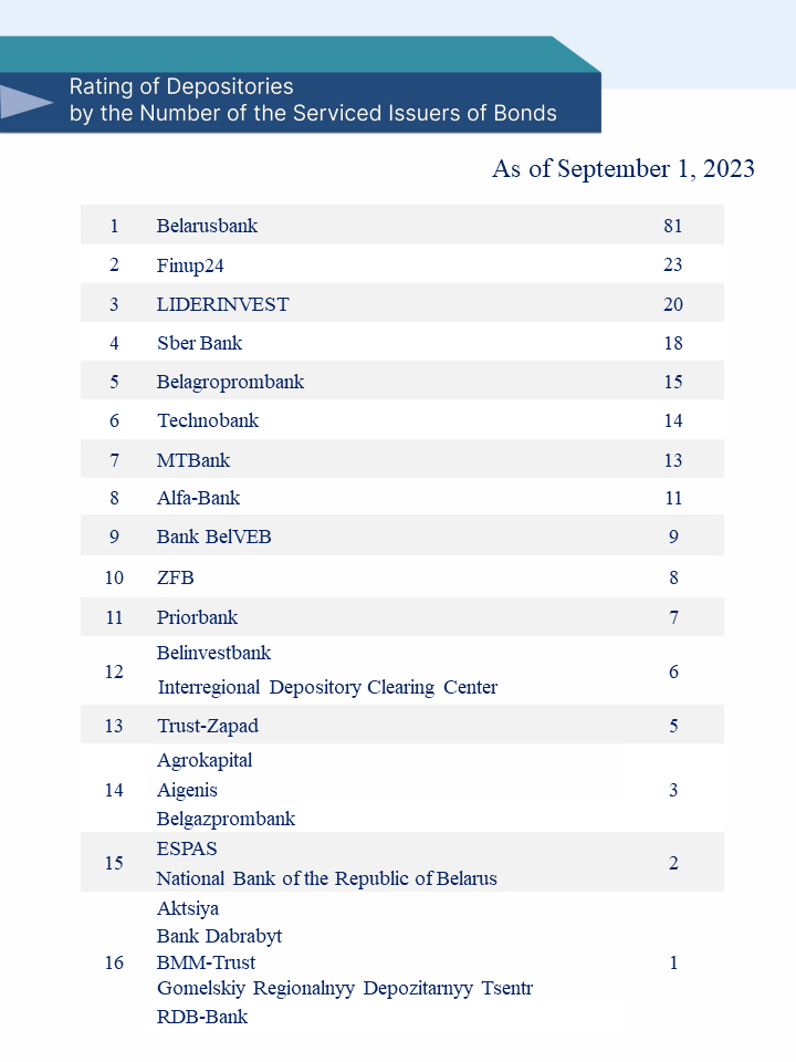 Rating of Depositories by the Number of the Serviced Issuers of Bonds