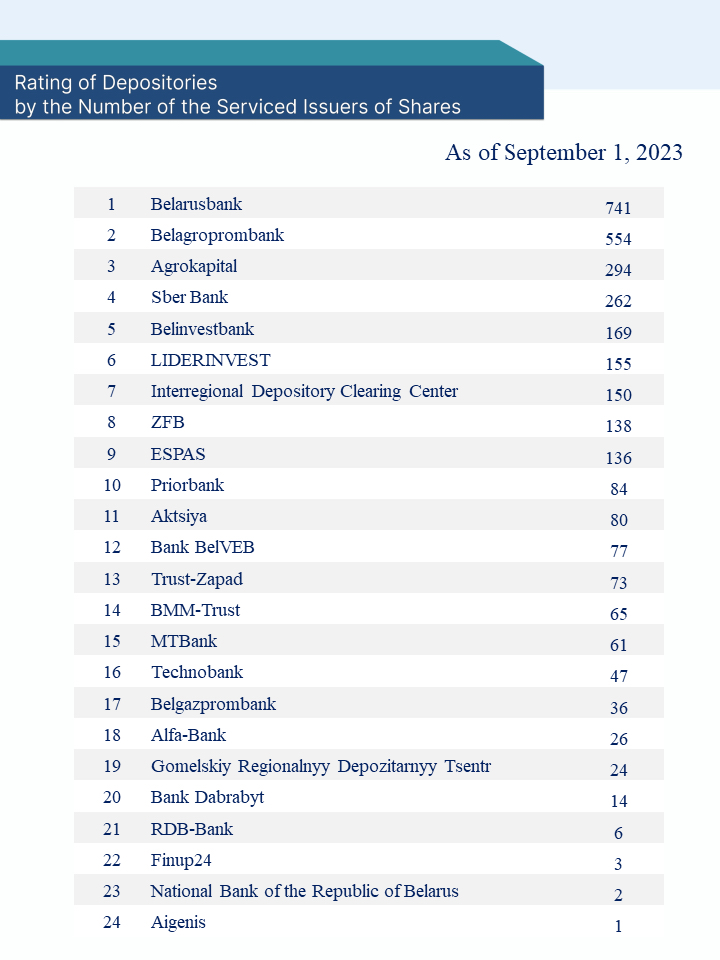 Rating of Depositories by the Number of the Serviced Issuers of Shares