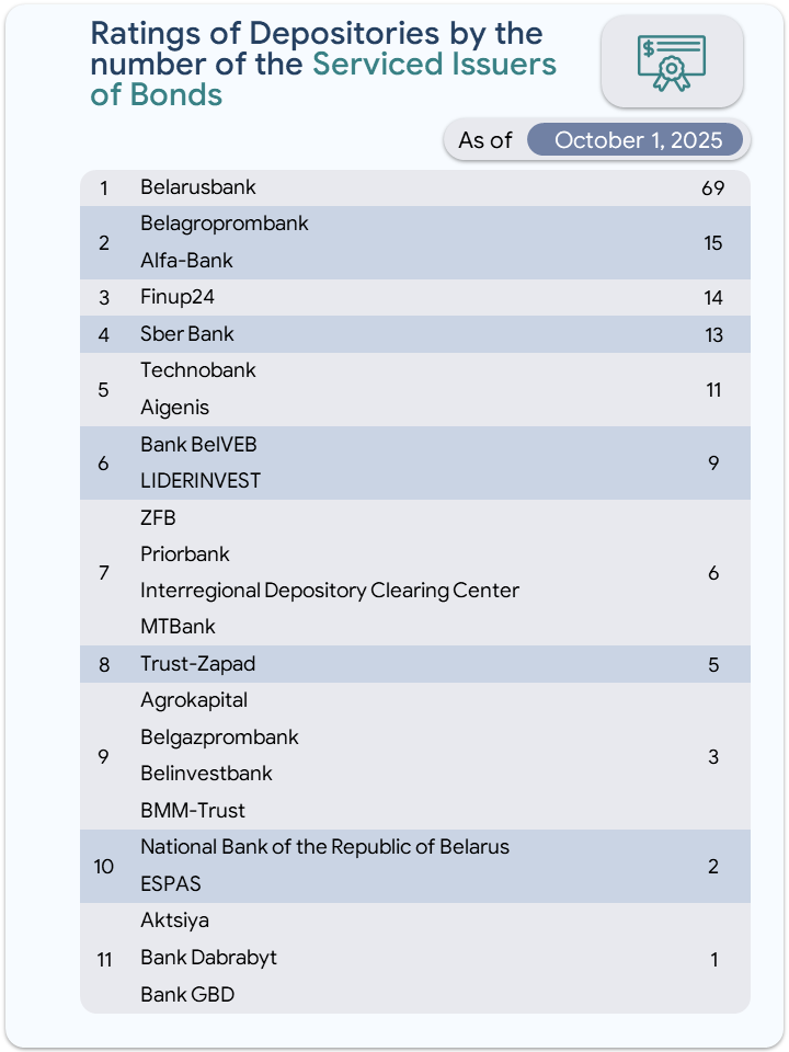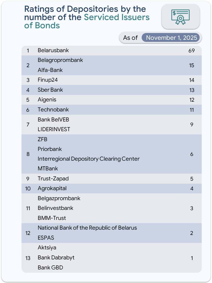 Rating of Depositories by the Number of the Serviced Issuers of Bonds