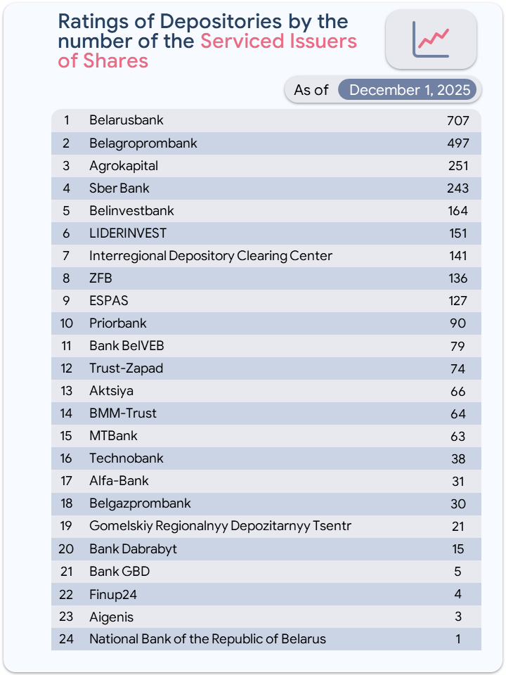 Rating of Depositories by the Number of the Serviced Issuers of Shares