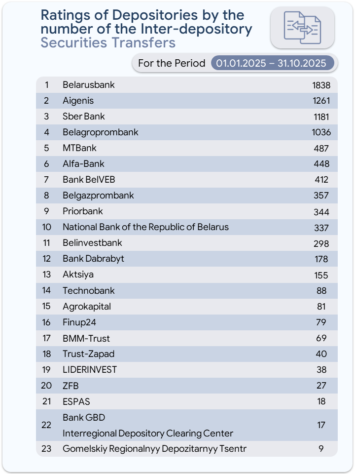 Rating of Depositories by the Number of the Inter-depository Securities Transfers