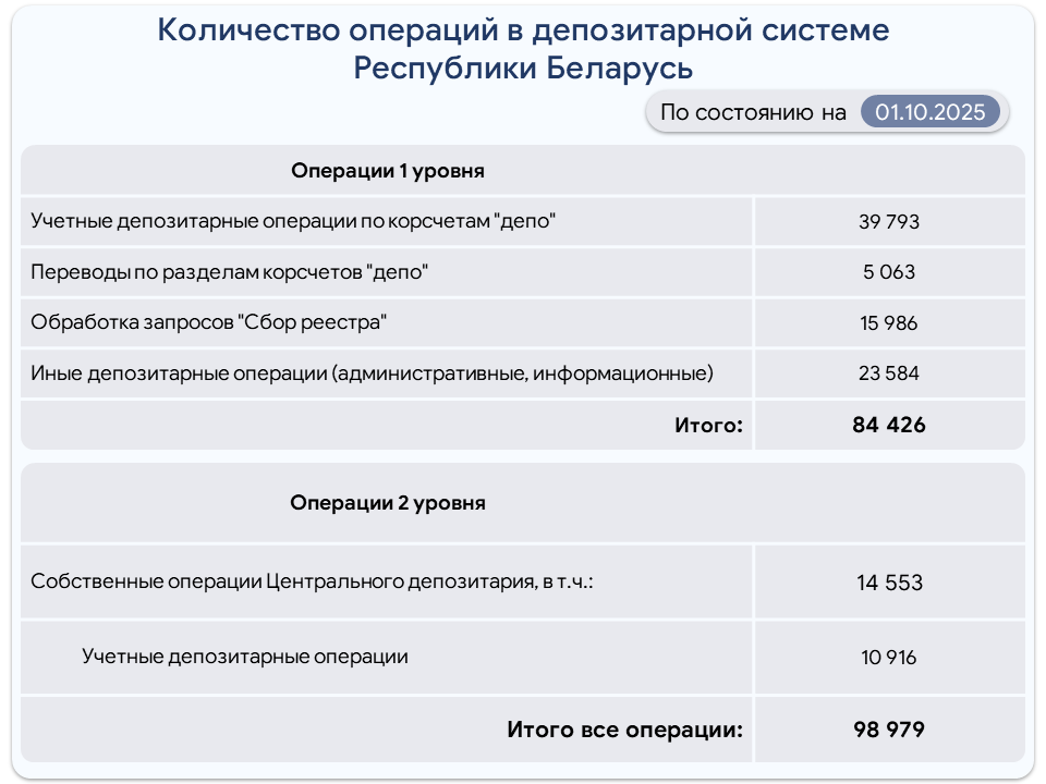Количество операций в депозитарной системе