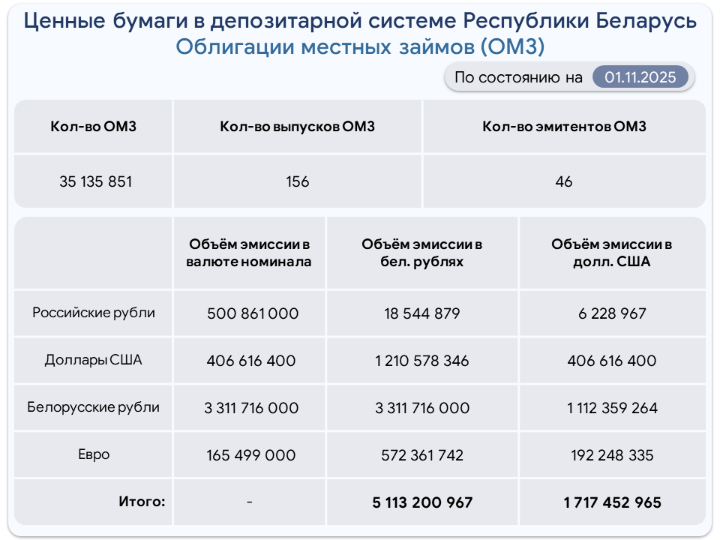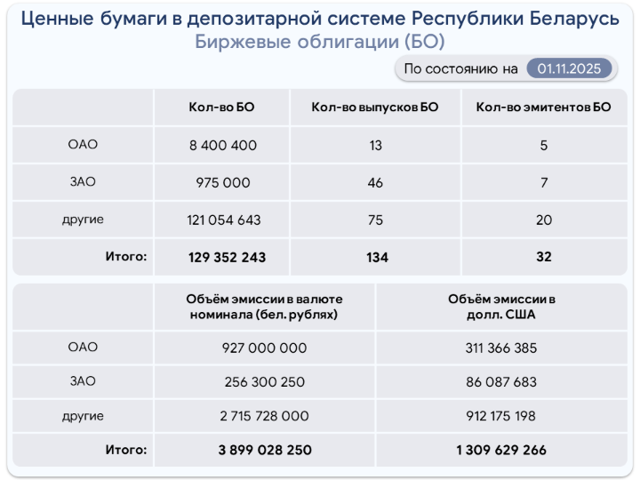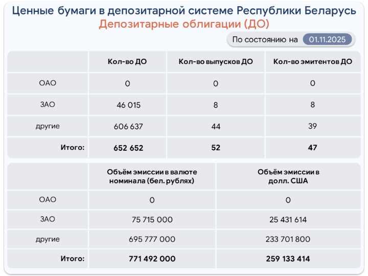 Ценные бумаги на централизованном хранении на 1 ноября 2025 г.