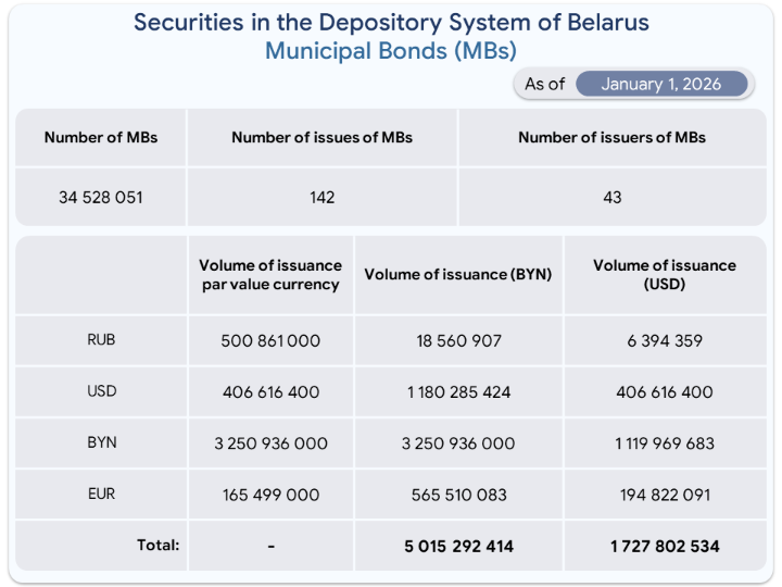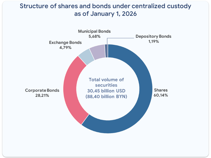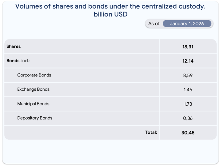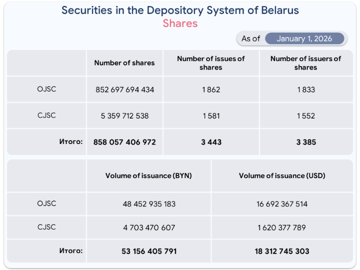 Volume and structure of shares and bonds as of January 1, 2026 Details