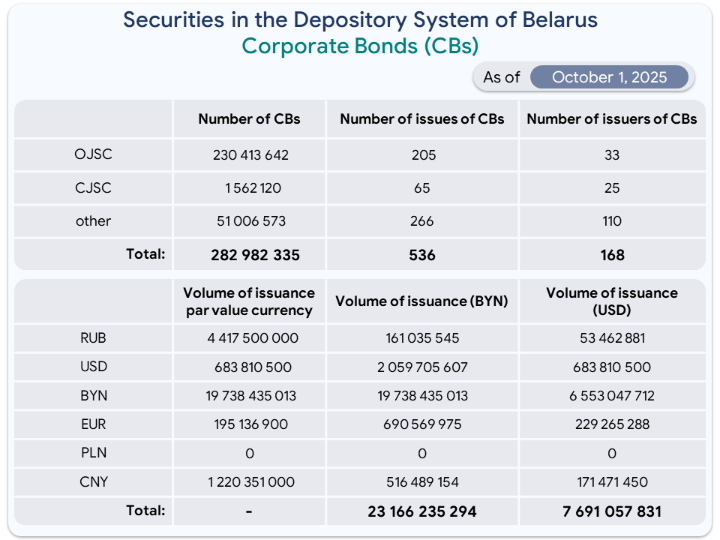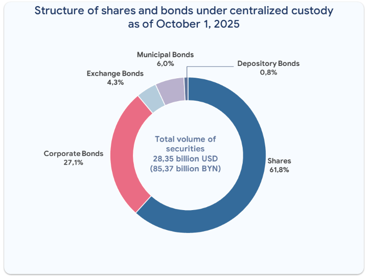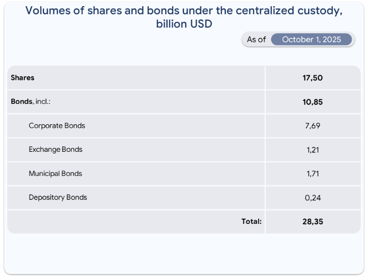 Volume and structure of shares and bonds as of October 1, 2025