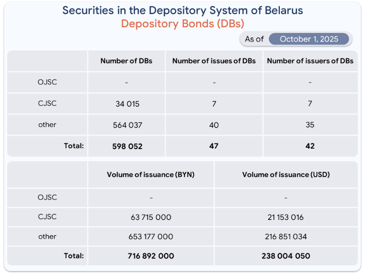 Depository operations in the depository system of the Republic of Belarus for 9 months of 2025