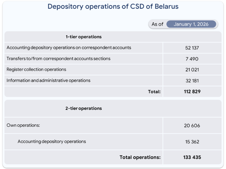 Depository operations in the depository system of the Republic of Belarus for 12 months of 2025 Details